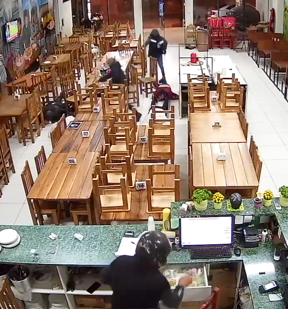 El circuito cerrado del local muestra que los violentos asaltantes llegaron y ya golpearon con la culata de un arma a unos de los empleados del local que justo salió a mirar a la calle. Luego ingresaron y obligaron al propietario Daniel Gustavo Espínola, a empleados y a clientes que se encontraban en el lugar a tenderse en el suelo boca abajo.